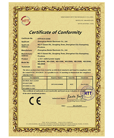 • 櫥柜燈電源CE證書